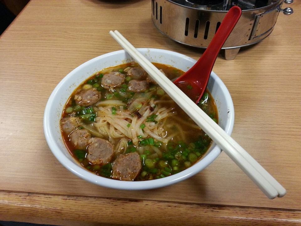 For the main, we ordered seafood hotpot and beef ball pho. Pho (pronounced like "fuuuh") is one of the most popular dishes from Vietnam, consisting of flat noodles, meat and a light broth. The pho was savoury but not salty. Since I am a fan of spicy food, I added some sriracha sauce and some other spicy condiments to the soup, it was delicious. This however was not needed because it was flavourful on its own.